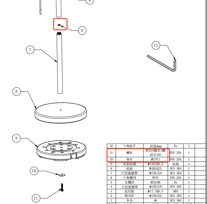 ④Marble base: