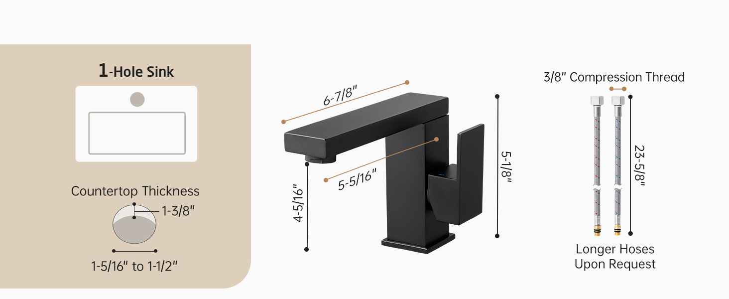 [Easy DIY Installation] Just put the vanity faucet directly into 1 hole. The package contains a quick-connect hose and US standard-sized supply lines for smooth installation.