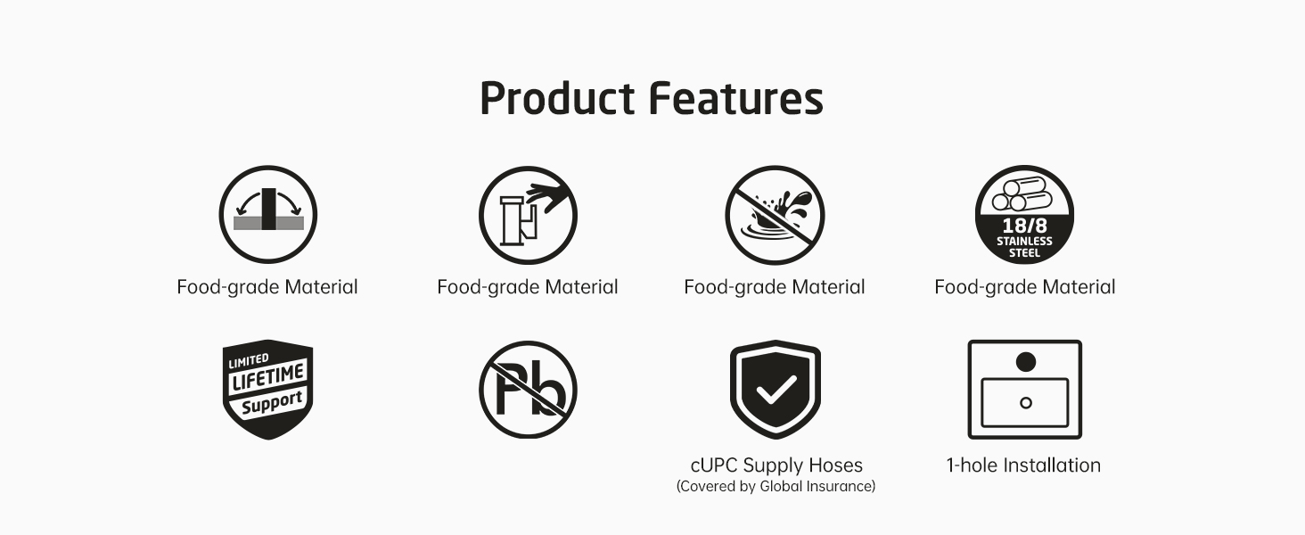 [Lead Free on Water Safety] KES bathroom faucet 1 hole is made of drinking water grade 18/8 stainless steel, ensures lead-free purity in water.