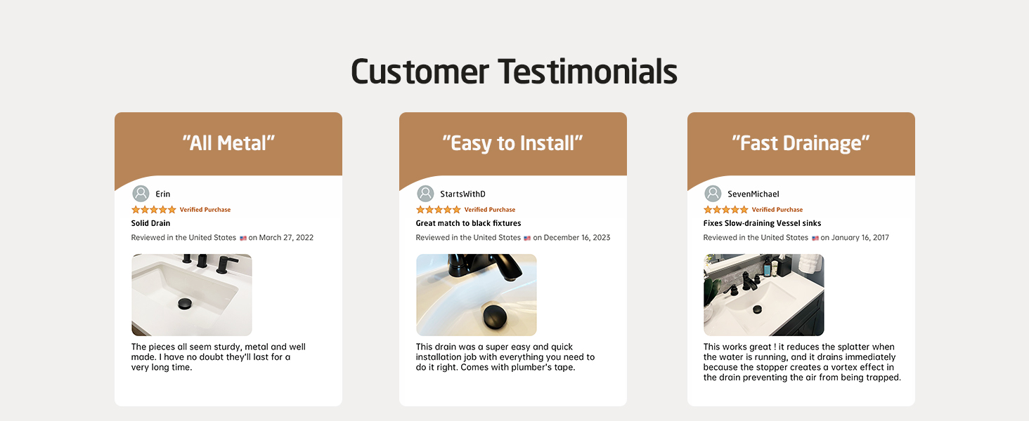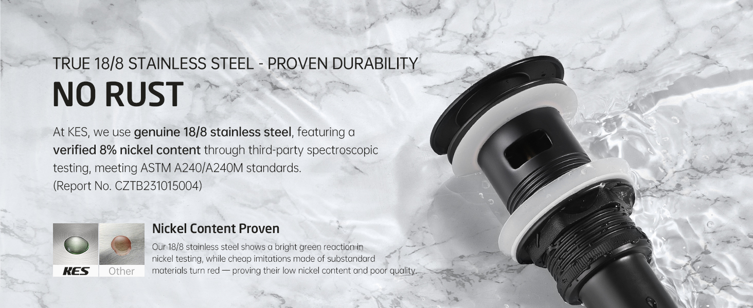 All-Metal & Rustproof: The pop-up drain is made of brass and 304 stainless steel without any plastic parts. High-quality finish ensures that the drain resists scratches, corrosion and tarnishing, which is rustproof and long-lasting for 10 years or more.