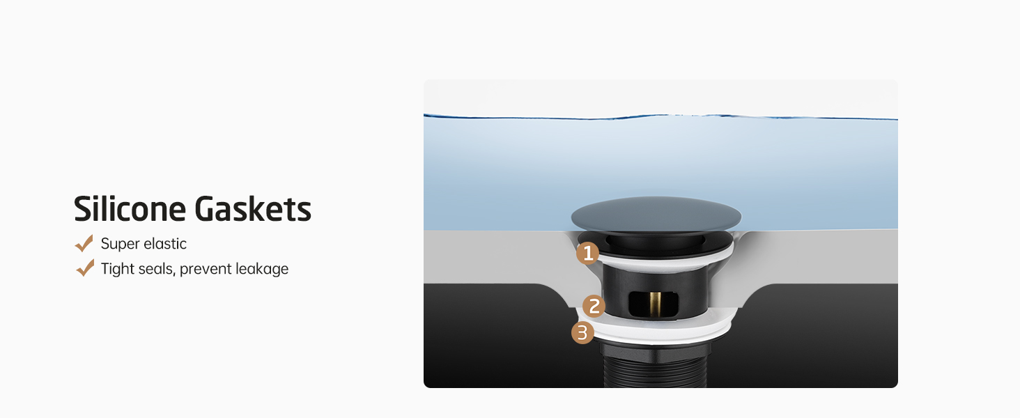Multiple Anti-leakage Design: The high-quality thickened silicone gaskets included fit the drain better and are anti-oxidation. With the 3-piece sealing ring design, KES vessel sink drain prevents water leakage more effectively.