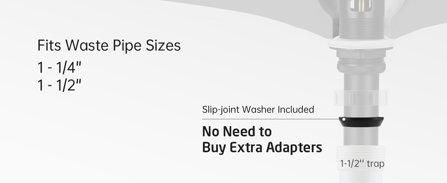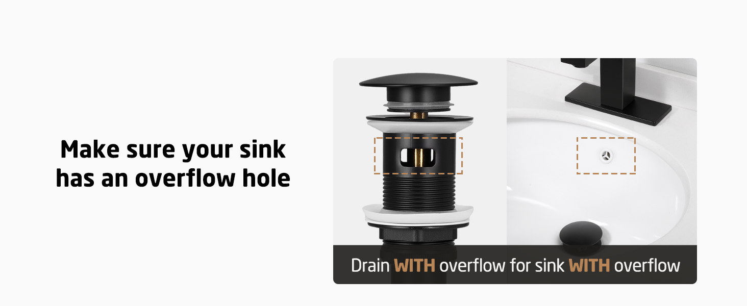 Standard 1 3/4″ Drain Opening: Fits sink hole diameter 1.6-inch to 1.9-inch. The maximum sink thickness is 1.97-inch. Ideal for most above-counter vessel sink with overflow.