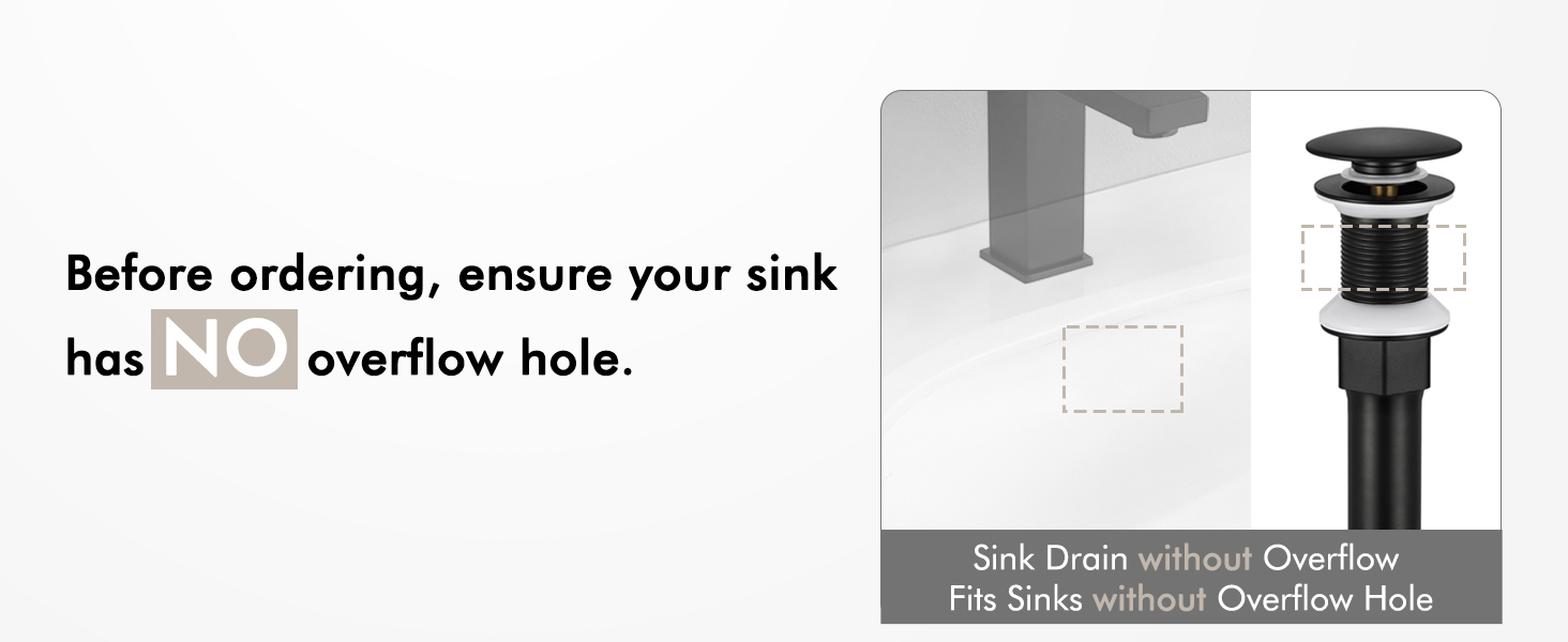 [For NO Overflow Hole Sinks] This bathroom sink drain without overflow is designed for sinks without overflow holes.