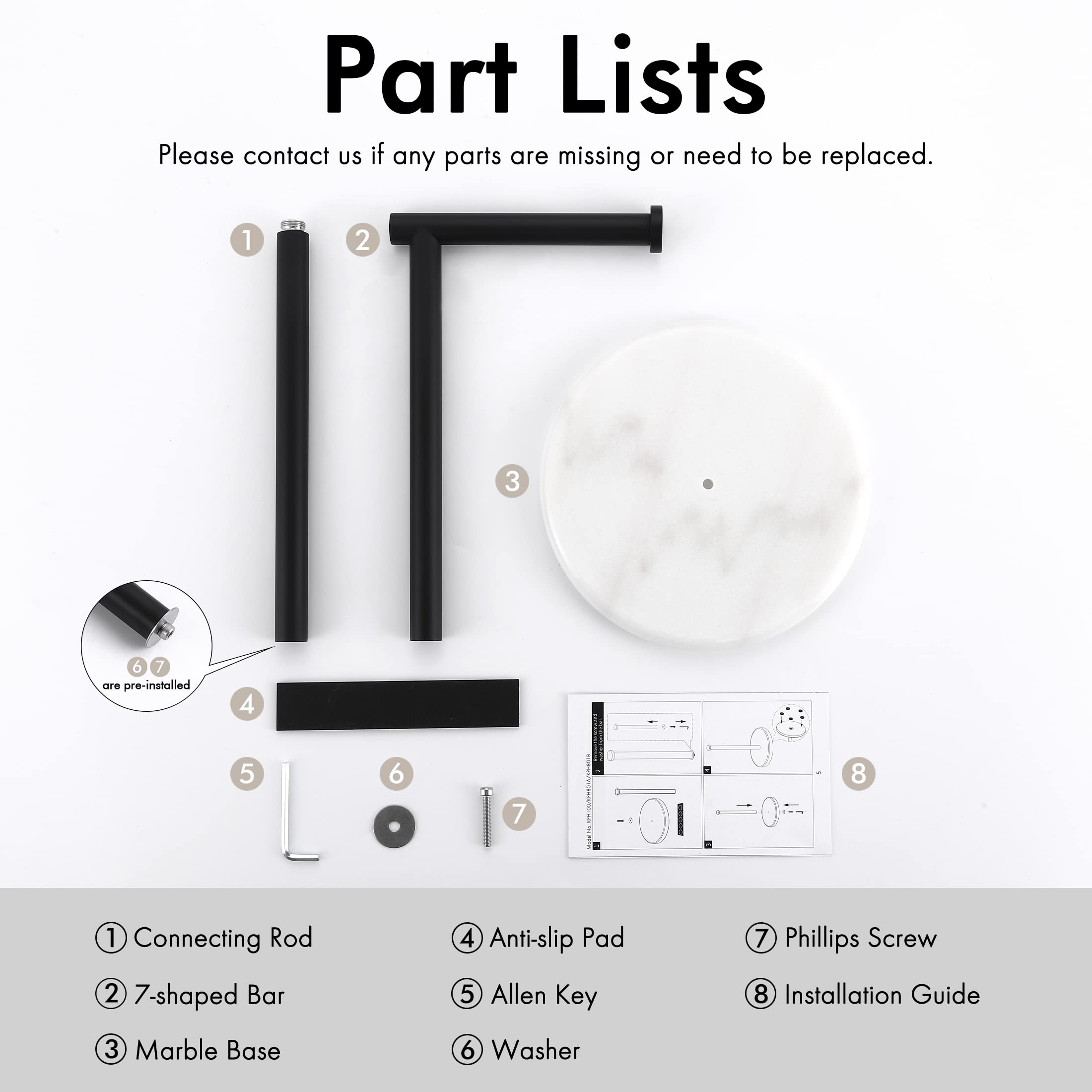 Freestanding Mount Type: Our roll holder is designed to be easily placed wherever you like in the bathroom, so you can keep the paper roll within reach. To install the toilet paper stand, you just need to fix the rod and the pedestal with a washer and screw. Note: Screw and washer are pre-installed. When installing, please ensure the recess in the center of the marble base is facing down, otherwise, the screw will not fit into the pedestal.