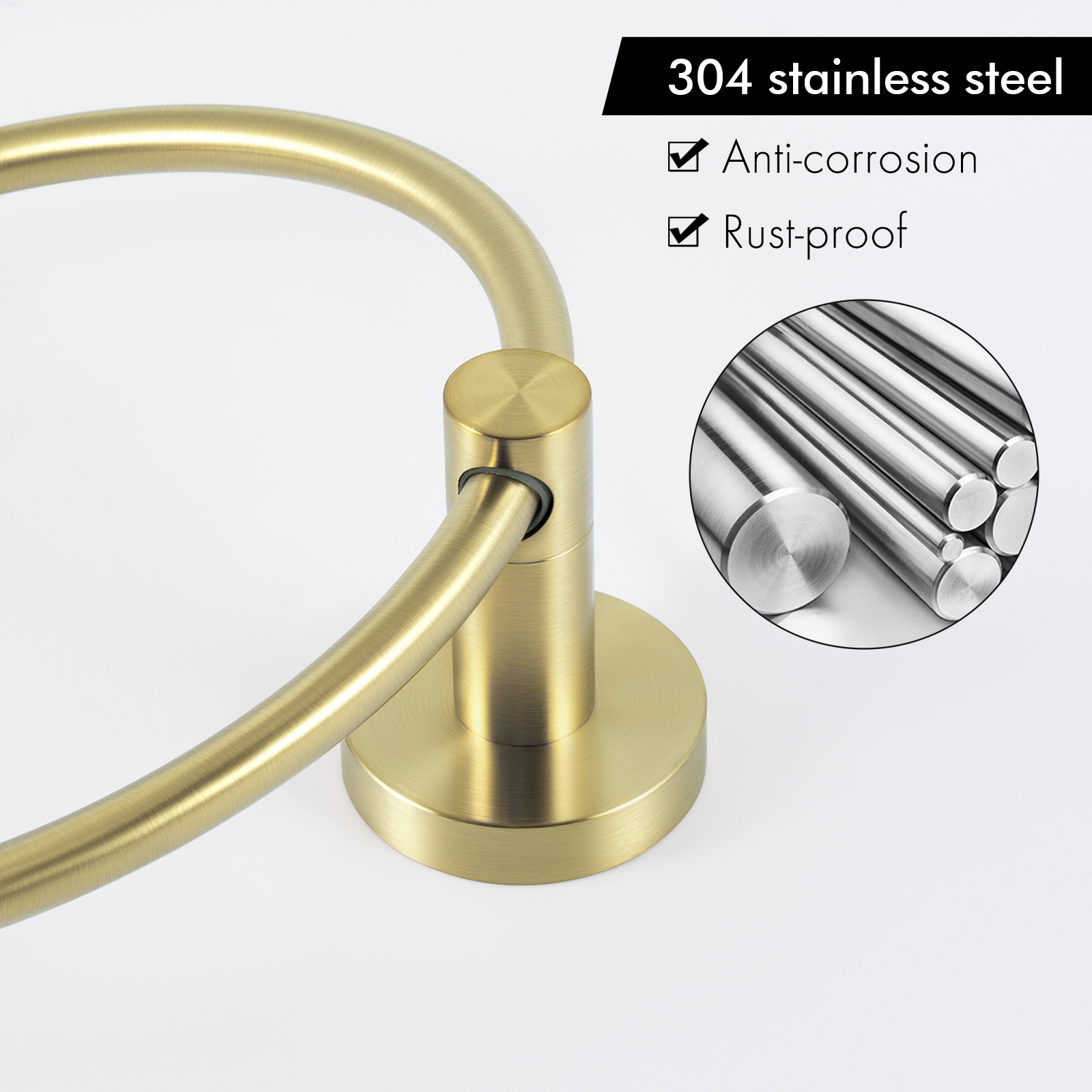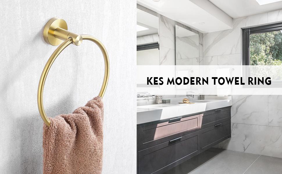 KES Brushed Gold Towel Ring Bathroom Hand Towel Holder Round Wall Mount SUS 304 Stainless Steel Brushed Gold Finish, A2180DG-BZ