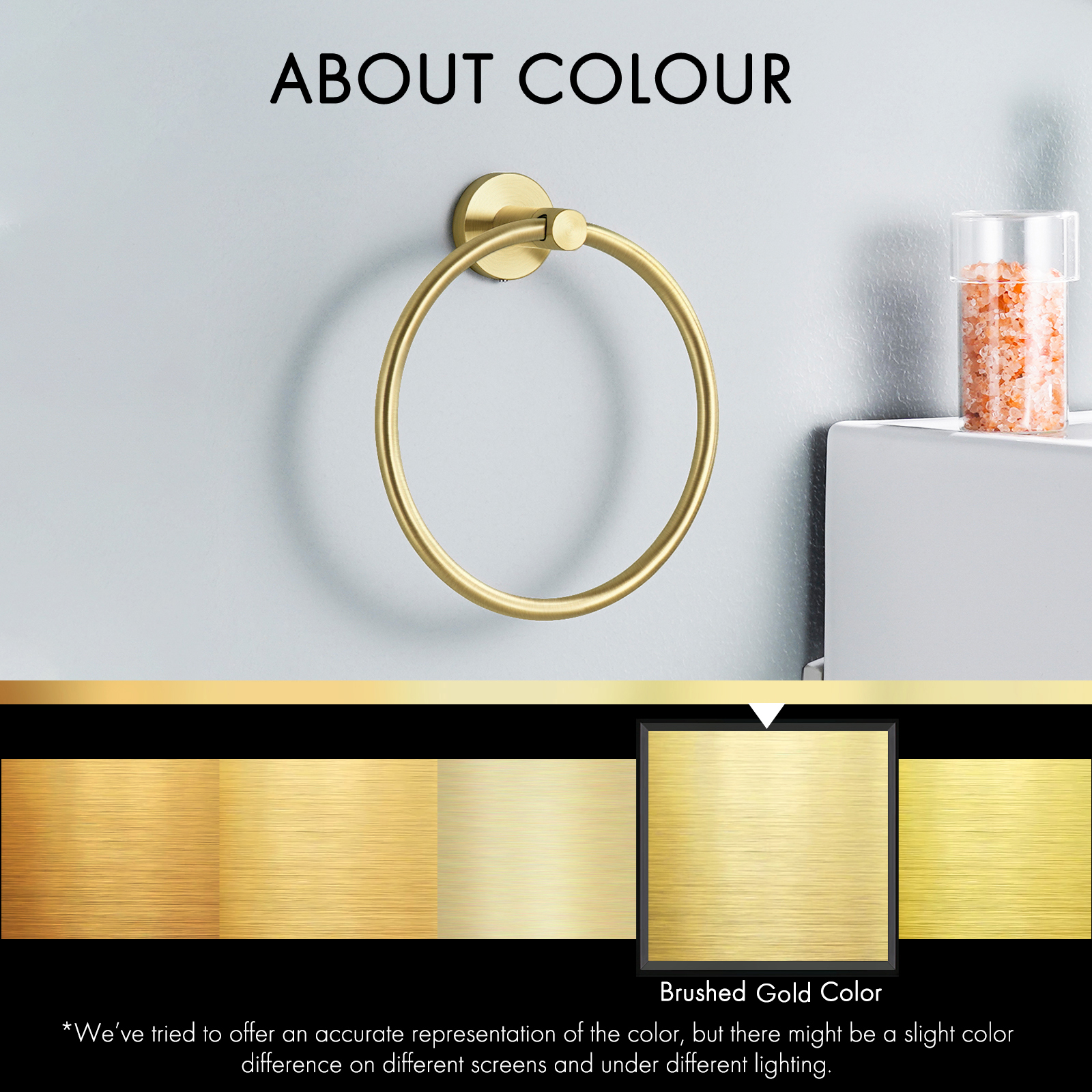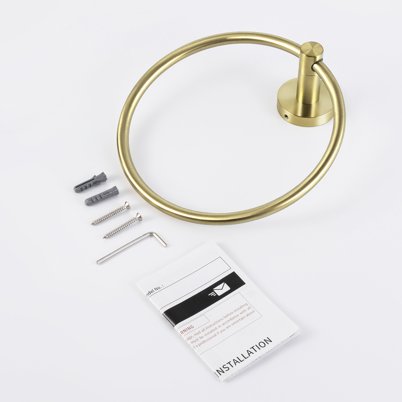 Package Includes: 1 x Towel Ring, 1 x Hardware Pack (for screw-mount installation), Installation Instructions.
