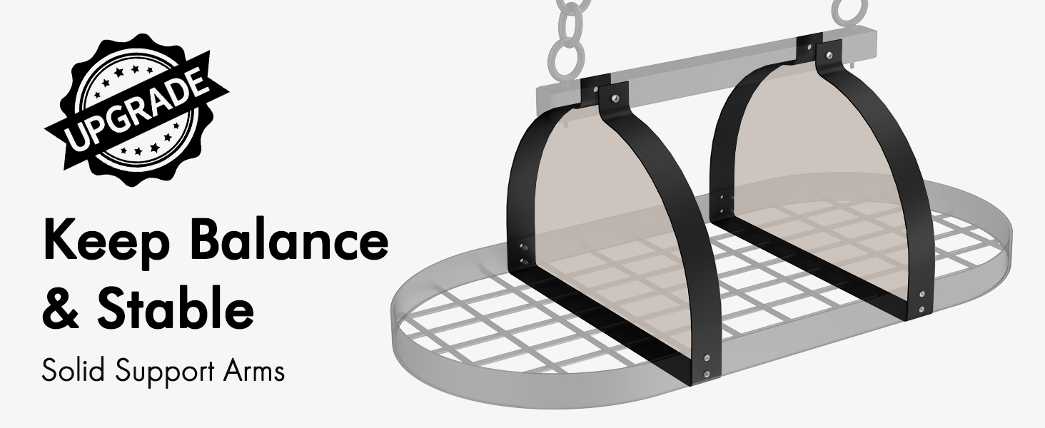 [ Keep Balance & Stable ] KES strengthened support arms provide perfect balance for your entire pot and pan hanger, ensuring stability and safety when storing or retrieving even your heaviest cookware.