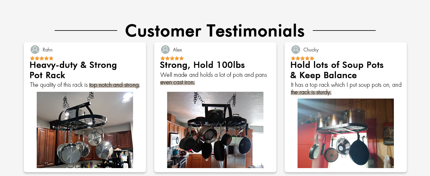 [ Solid & Stronger Chains ] With 0.16″ thick & solid chains that are 50% thicker than others for greater weight-bearing capacity. You can confidently store your heaviest pots and pans on this heavy-duty pots and pans organizer.