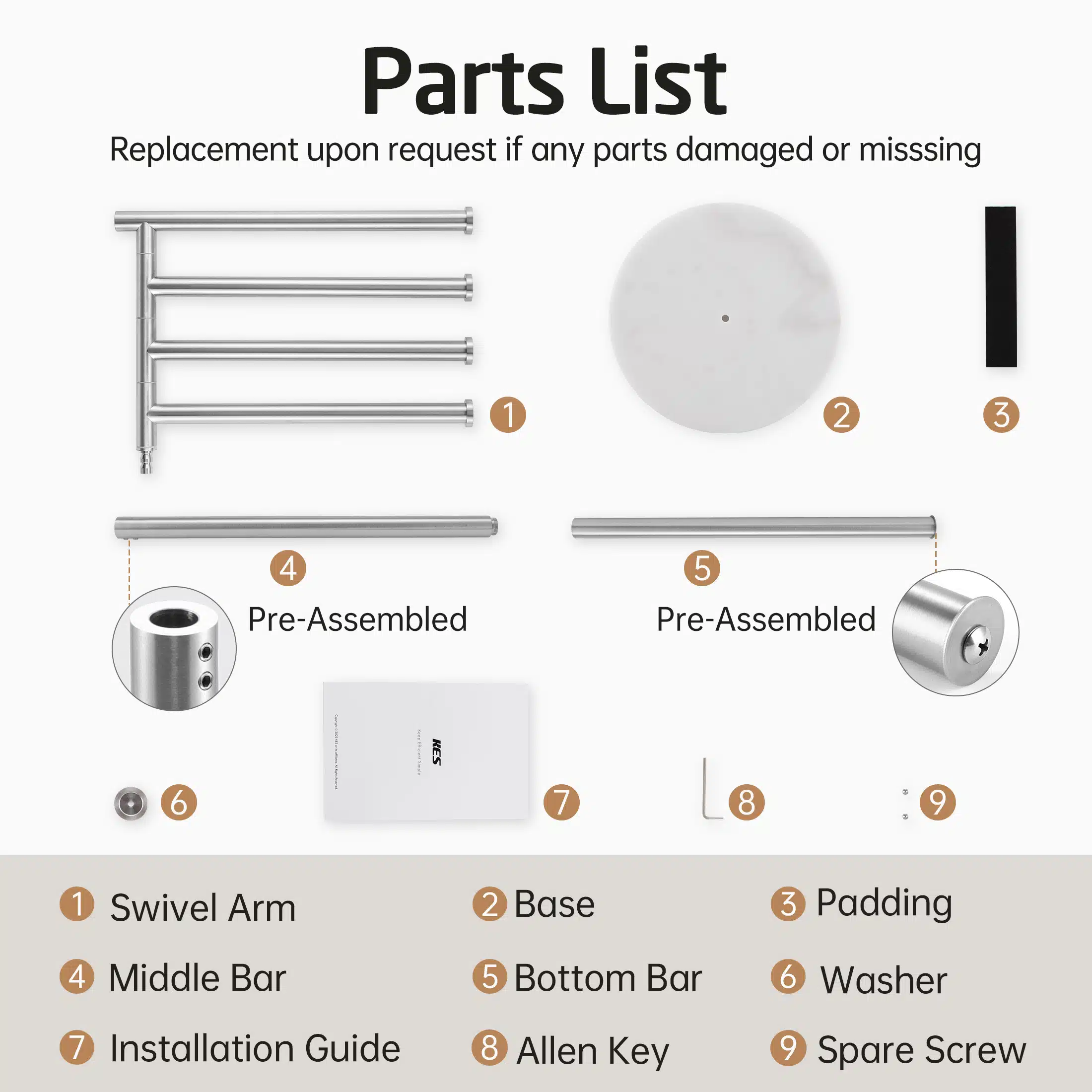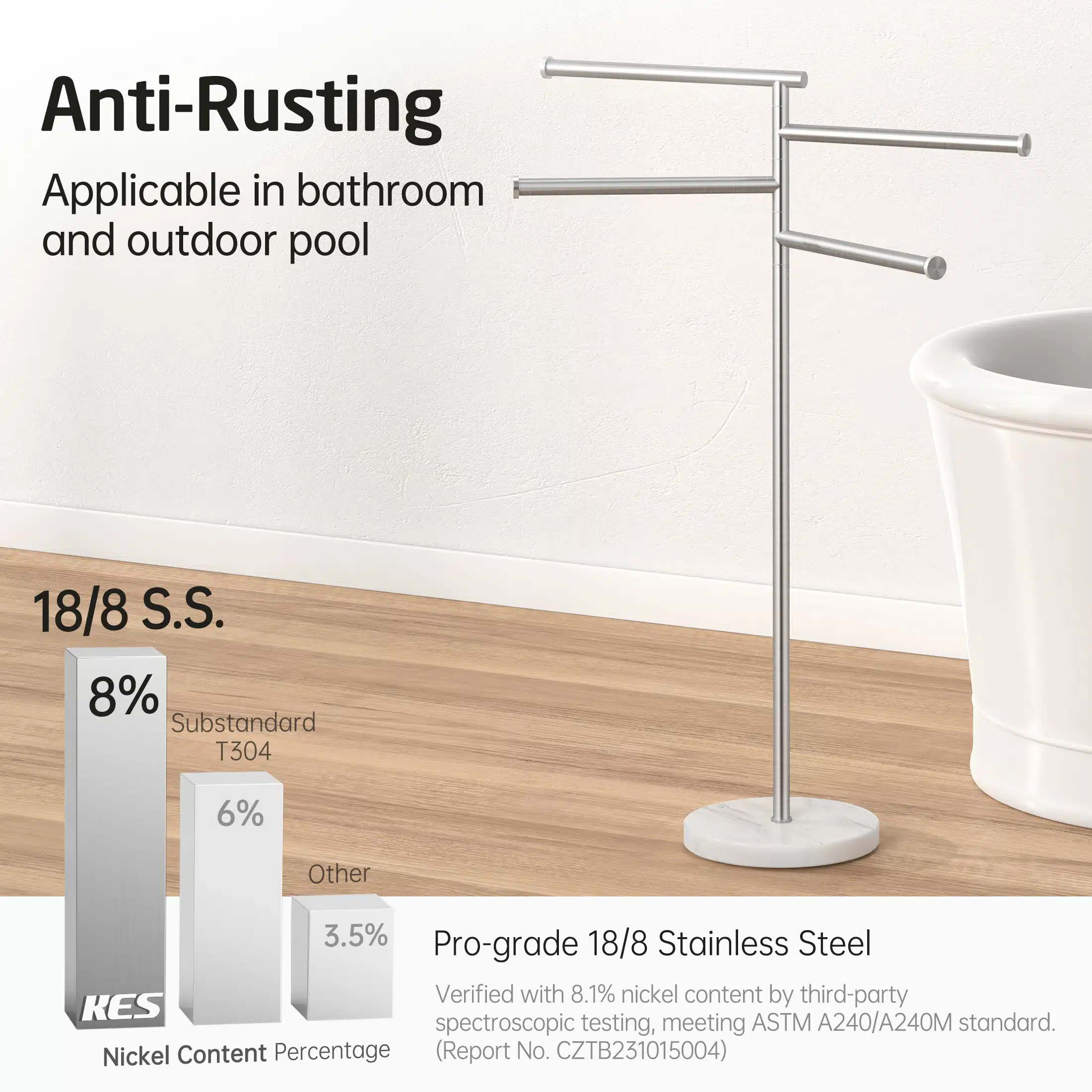 KES Freestanding Towel Rack 40-Inch, 4 Swivel Bars, 18/8 Stainless Steel, Brushed Finish, BTH438S4WF-2