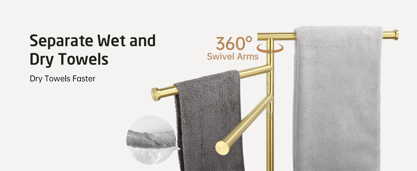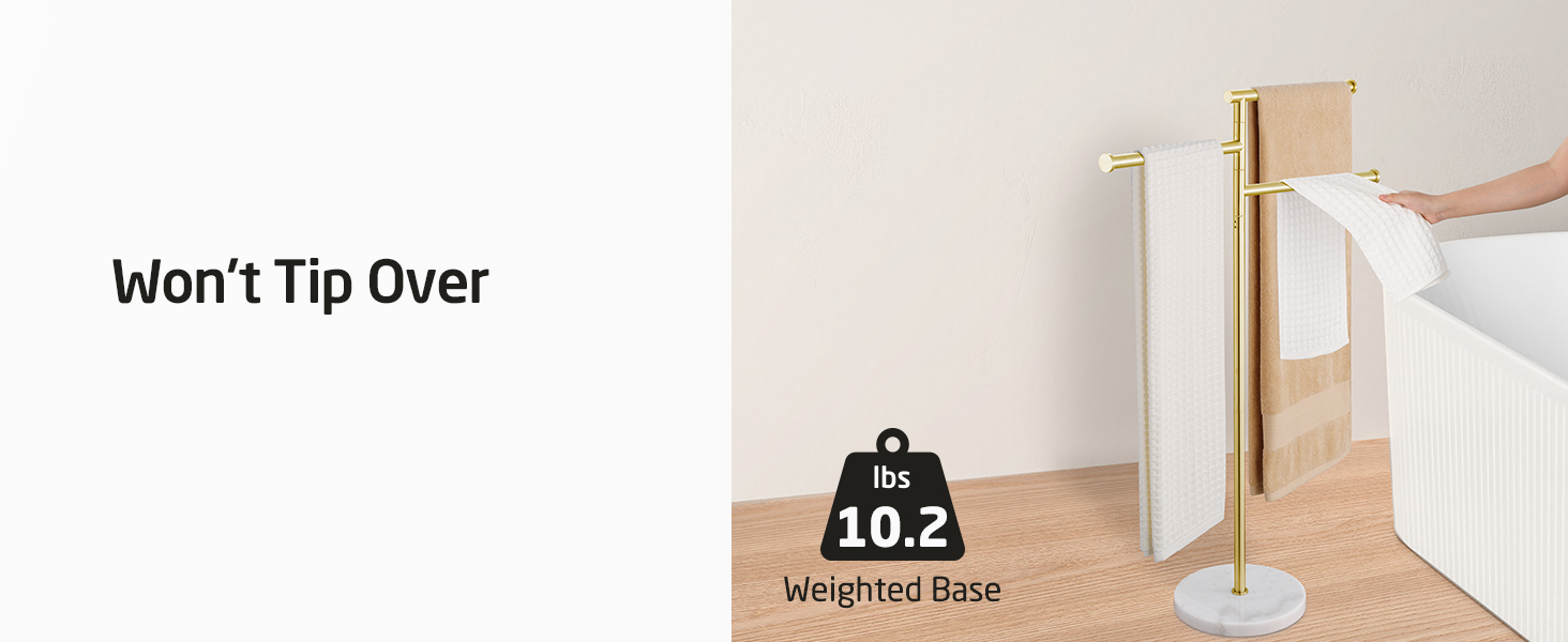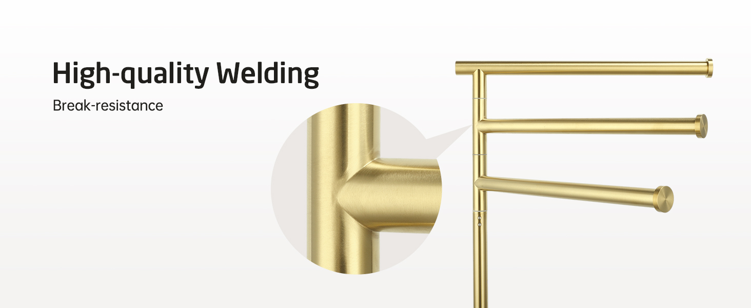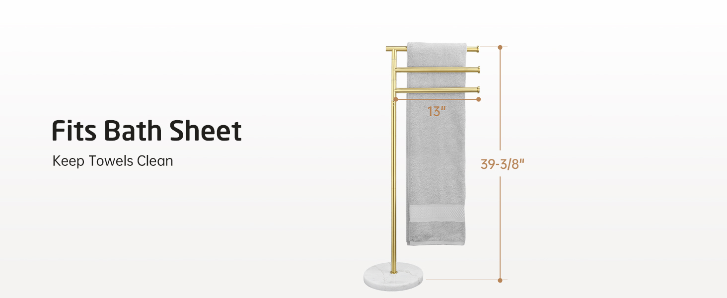 KES Freestanding Towel Racks for Bathroom, Free Standing Swivel Arms 3 Bath 40-Inch Floor Standing Towel Racks with Weighted Marble Base, SUS304 Stainless Steel Brushed Gold, BTH219-BZ