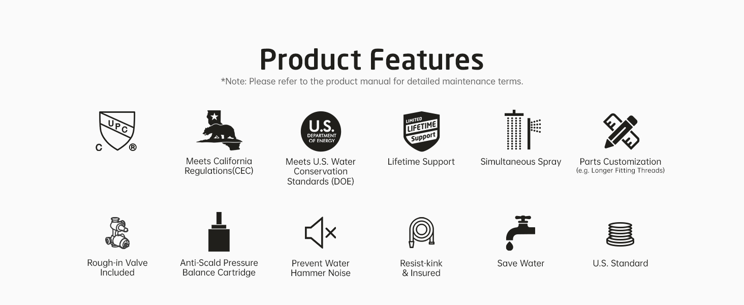 [ Use Showerhead & Hand Shower Simultaneously ] Both shower head and handheld shower can run at the same time with satisfying output, allowing you to enjoy double shower coverage or shower with your love one.