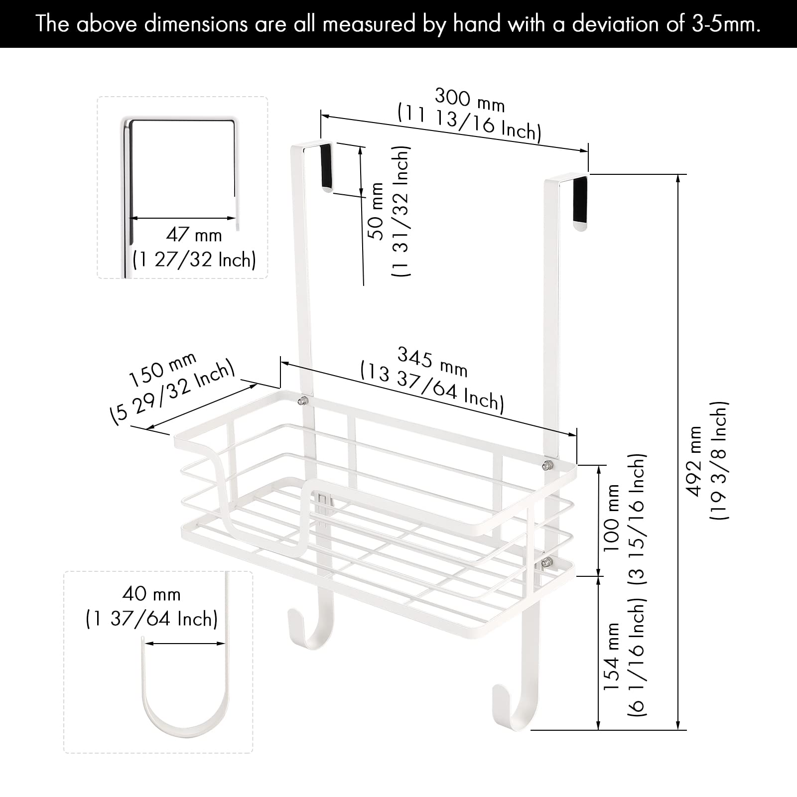 KES Ironing Board Hanger, Over The Door Ironing Board Holder, Fits for 1 3/4″ Doors, T-Leg Ironing Board Door Hanging Rack with Large Storage Basket, White, HIR500B-WH