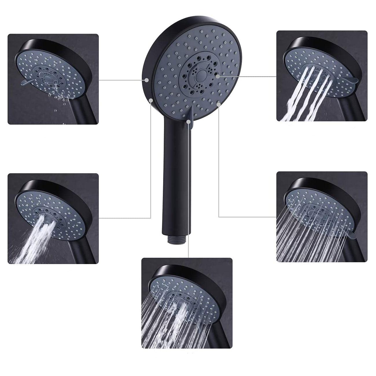 FIVE FUNCTION HAND SHOWER HEAD:Five Setting Handheld Shower Head, Trickle, Massage, Relaxing Massage, Full Coverage, and Soothing Massage. Give you a special showering experience. TRICKLE FUNCTION: Switch to drip function when you need to stop the water for a while during the shower. This function can reduce water flow to tickles, not only can save water effectively but also can keep the temperature constant. Spare the trouble of readjusting temperature.