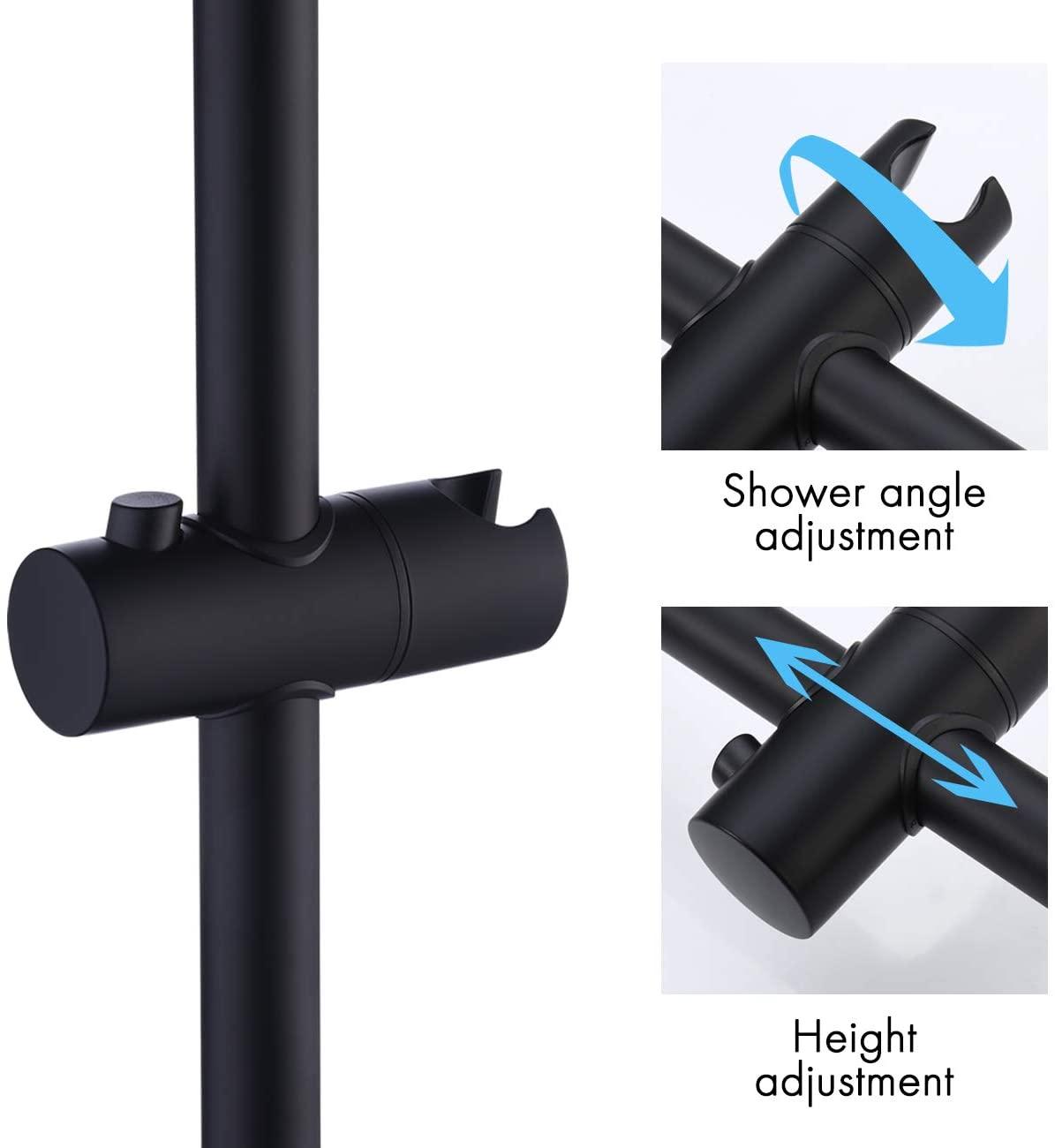 ADJUSTABLE BRACKET: Adjustable Shower Bracket, allows you to adjust any height or angle of handheld shower head after installation. Shower height and angle can be easily adjusted, providing perfect shower experience for every family member.