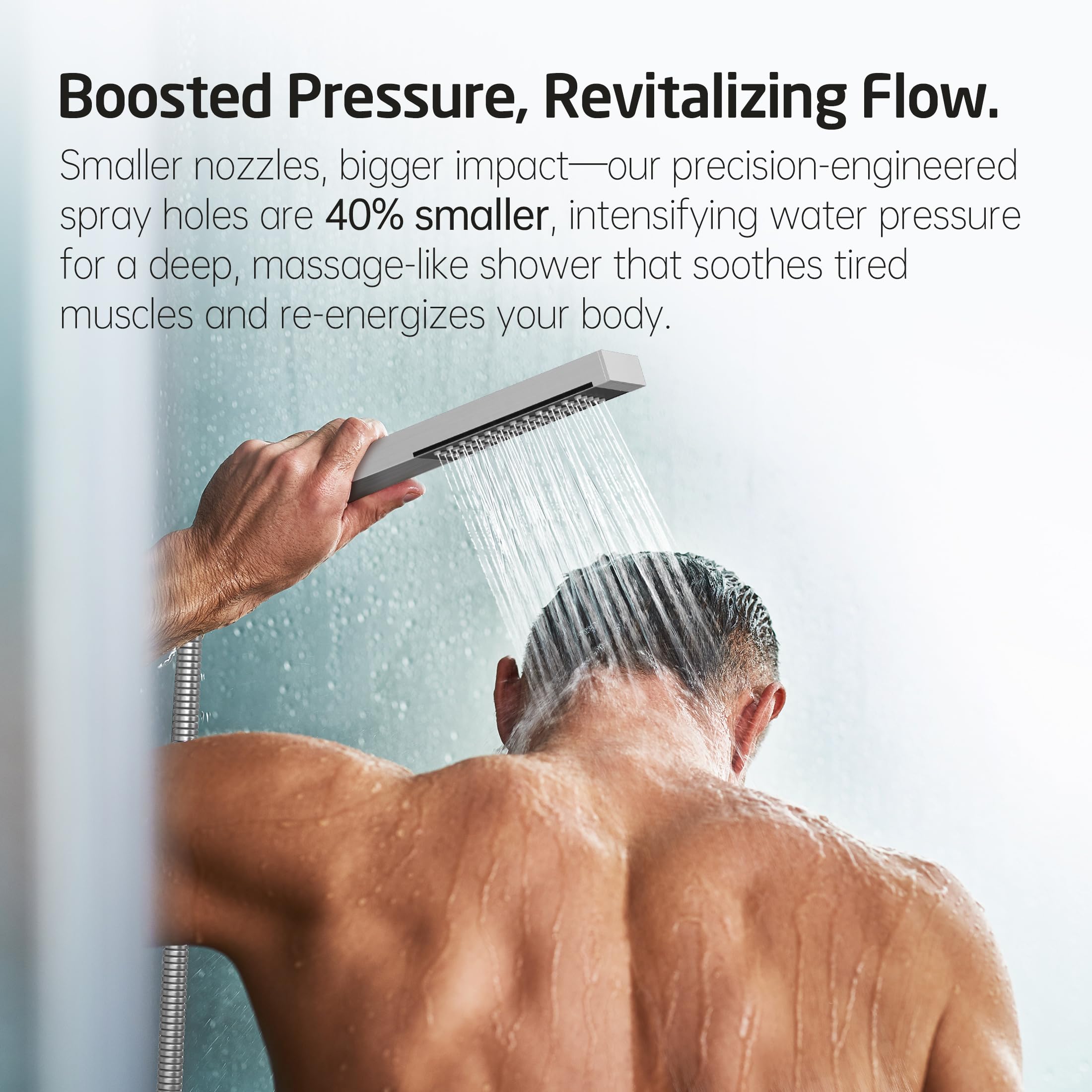 [Anti-Scald] Pressure-balanced valve prevents water pressure fluctuations, so the shower water temperature will be constant and not change suddenly even when the toilet is flushed or other appliances are utilized with water.