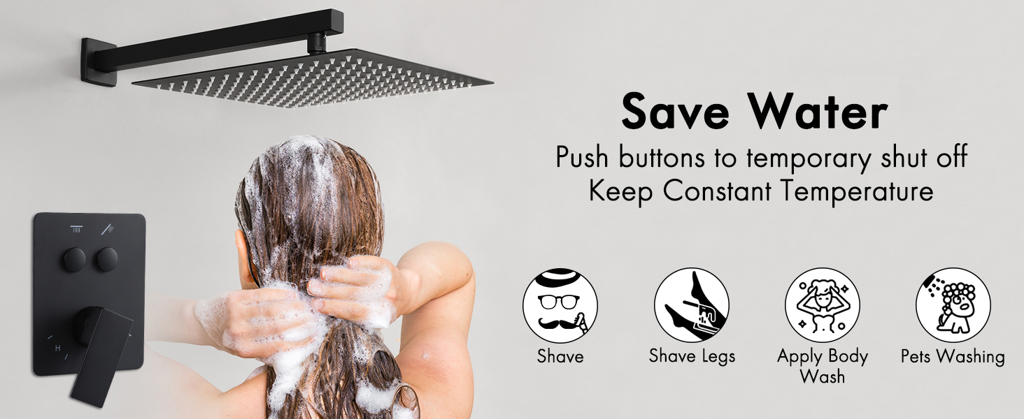 Select Mode At A Touch of Buttons: One lightly click is all it takes to select your shower pleasure, even if your hands are slippery. Seniors and children can also easily push the intuitive buttons.