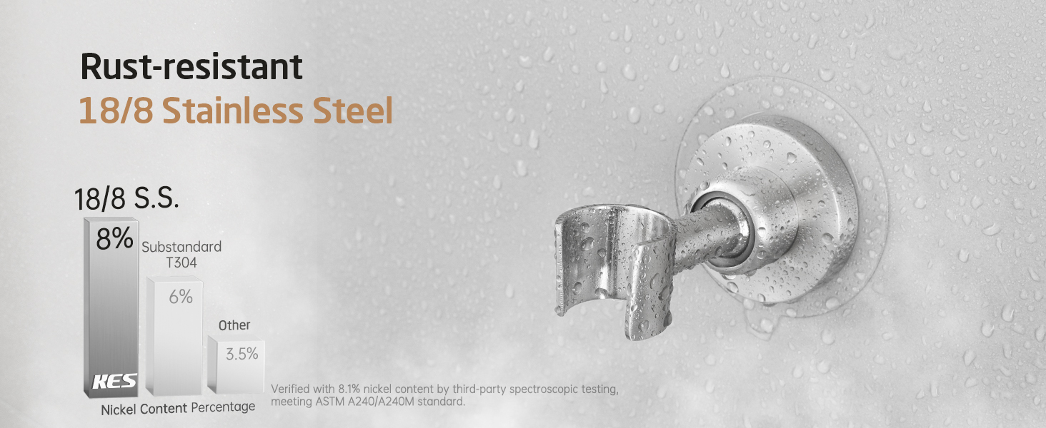 [18/8 Stainless Steel – Prevent Rusting & Hardwearing] Unlike shower head brackets made of ABS commonly found in the market, KES shower head brackets are made of 18/8 stainless steel. It is more robust and hardwearing, effectively preventing rust and corrosion.