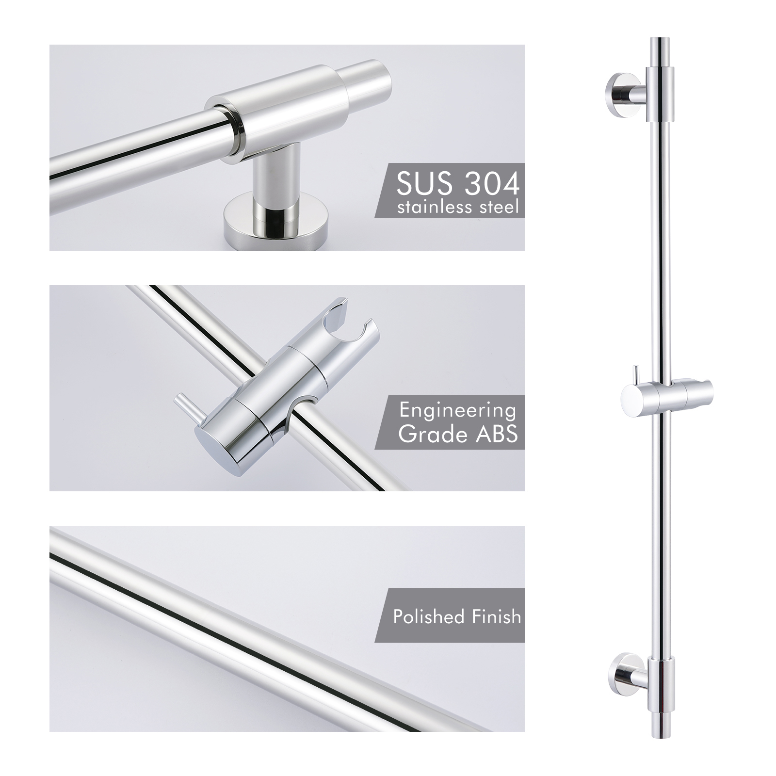 SUS304 Stainless Steel – Rustproof & Hardwearing: KES uses premium-grade SUS304 stainless steel to make the shower bar for shower head and mounting plates, which has better performance in resisting rust and corrosion than those made of metal or 201 stainless steel, so it is ideal for use in humid environments without getting rust such as bathrooms. Also, the thick SUS304 stainless steel keeps the slide bar from bending and breaking so it is sturdy enough to hold the handheld shower.