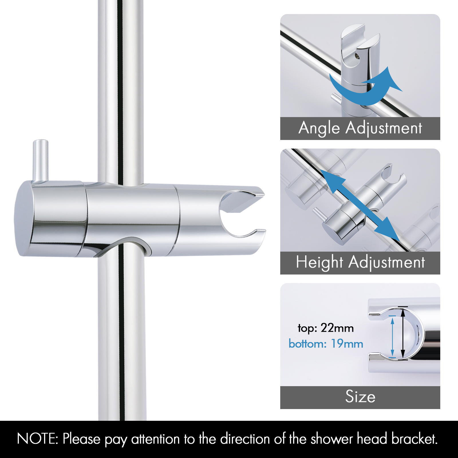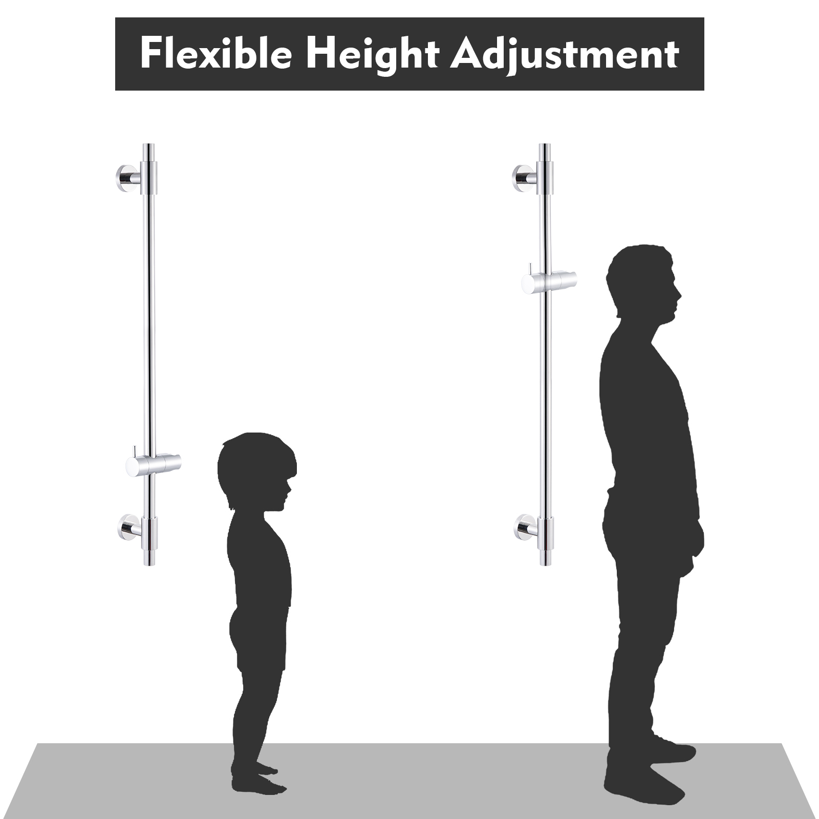 Adjustable Handheld Shower Holder: The handheld shower holder is made of engineering-grade plastic (ABS) so it is more sturdy & hardwearing than those made of regular plastic. Quickly and easily customize your shower height by sliding the shower bracket up and down a sleek stainless steel rail in one simple motion. Shower height and angle can be easily adjusted, providing the perfect shower experience for every family member.