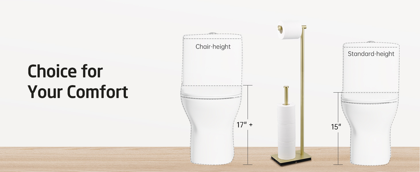 THOUGHTFUL DESIGN: This toilet paper roll holder is 29.5 inch (75cm) in height. With a higher position, easier to fetch your toilet paper. The roller arm is 4.9 inch (12.6cm) in length, fits for most of the household size rolls such as Regular, Mega, and Jumbo. Besides, the roller arm cap can keep toilet paper roll in place, prevent it from falling off.