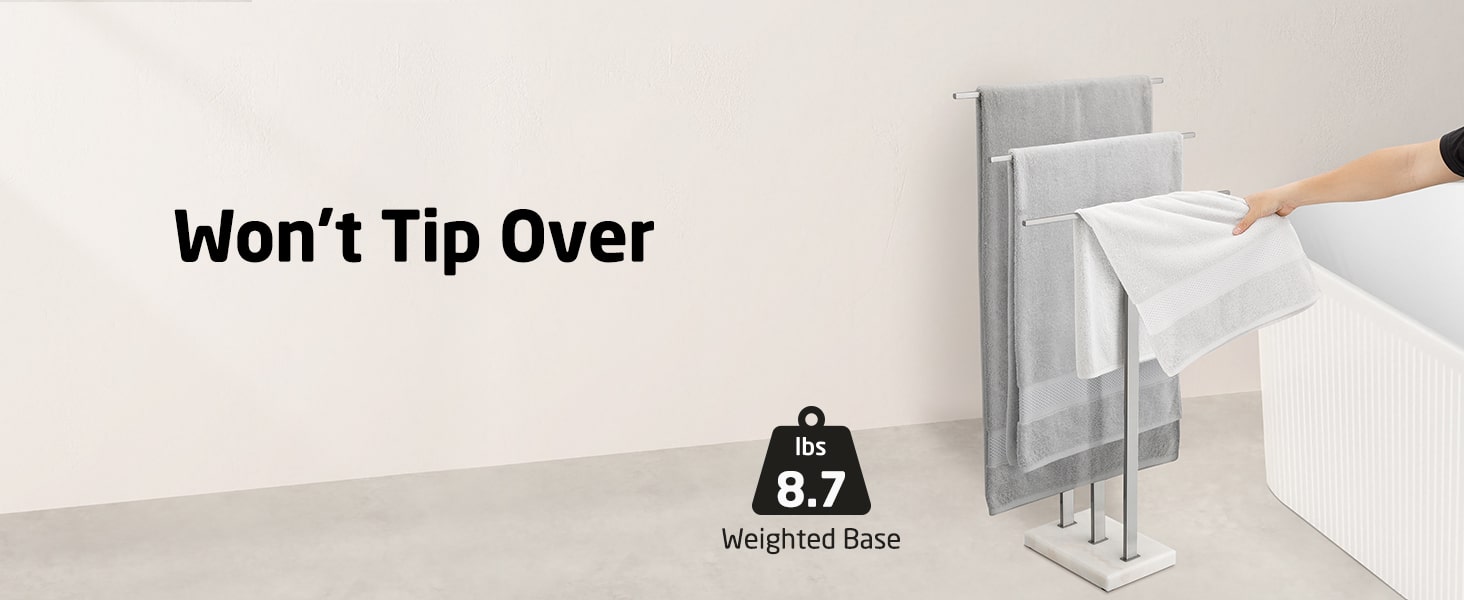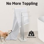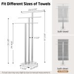 3 T-bars Design – Holds A Family’s Towels: KES standing towel rack has 3 tall bars to hold more towels without touching the floor. The tallest bar (36″/91cm) fits bath sheets. The middle bar (32″/81cm) fits bath towels. The shortest bar (28″/71cm) fits hand towels