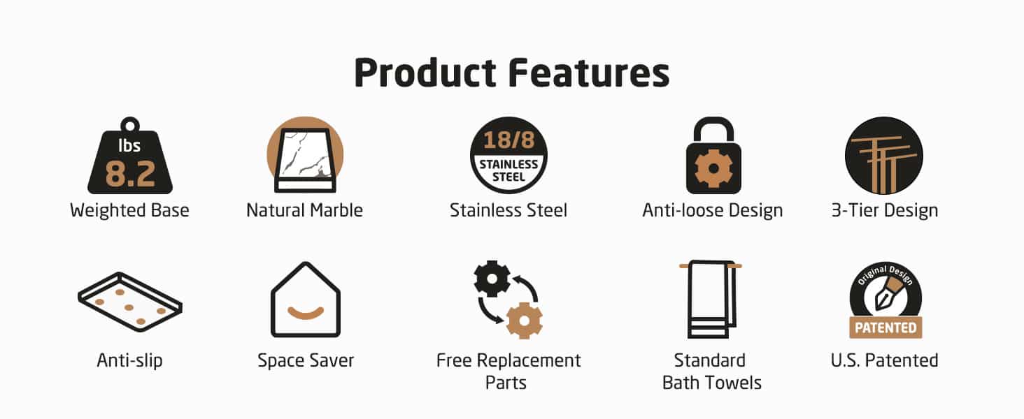 Anti-Slip: KES provides four circular anti-slip adhesives for the bottom of the marble base, so the unit will stand still in the slippery bathroom. Also, the padded bottom protects the floor from scratching