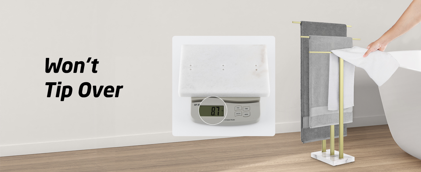 Weighted Base – Won’t Tip Over: KES natural marble base is 3.75 kg/8.23 lbs, which is almost double the weight of similar products and keeps the entire unit very stable when you access towels. Also, each base is unique as they come in different patterns.