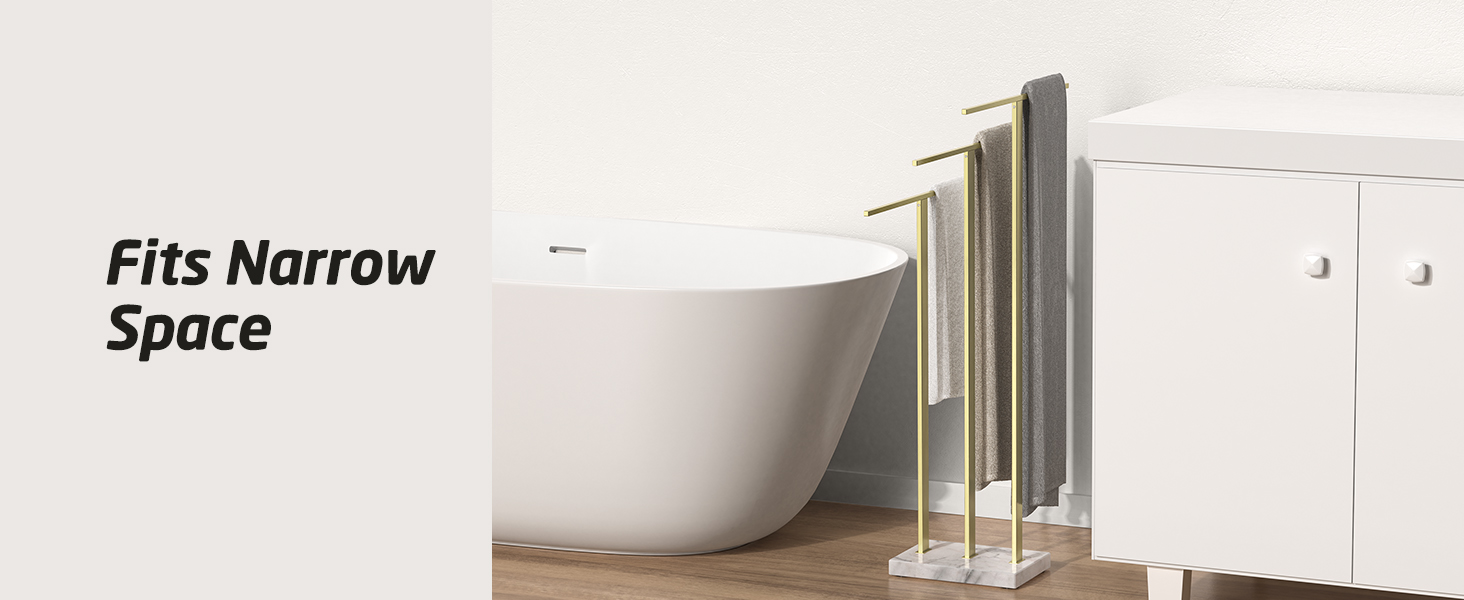 3 T-bars Design – Holds A Family’s Towels: KES standing towel rack has 3 tall bars to hold more towels without touching the floor. The tallest bar (36″/91cm) fits bath sheets. The middle bar (32″/81cm) fits bath towels. The shortest bar (28″/71cm) fits hand towels.