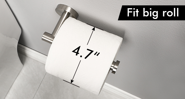 Fit Big Roll: Max. length of paper roll is 4.92-inch and Max. diameter is 4.7-inch. Hold even mega-sized rolls of toilet tissue.