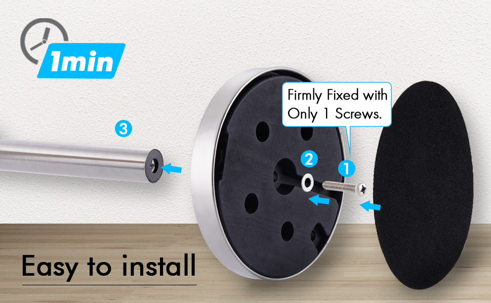 Easy to Install: It’s no need to drill and can be installed in 1 minute! Just connect the stainless steel rod to the base with the screws and you can enjoy the convenience that the toilet paper roll holder brings to you. The large end cap of this toilet paper roll storage prevents the roll from jumping out when tearing it. It is also easy to move anywhere you want in your house.