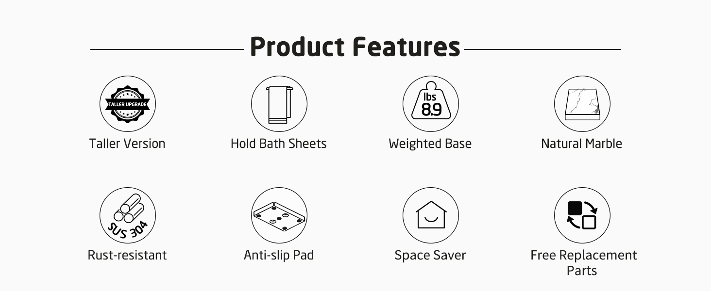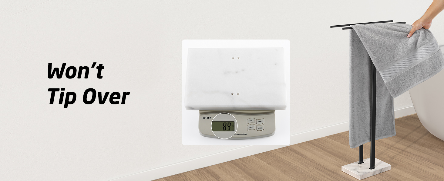 [Heavy Base – Keep Stable] Our marble base is 8.23 lbs/3.75kg which is twice as heavy as others, so towel racks for bathroom freestanding will stand firmly without tipping over. It also features varieties of colors and patterns to embellish your bathroom.