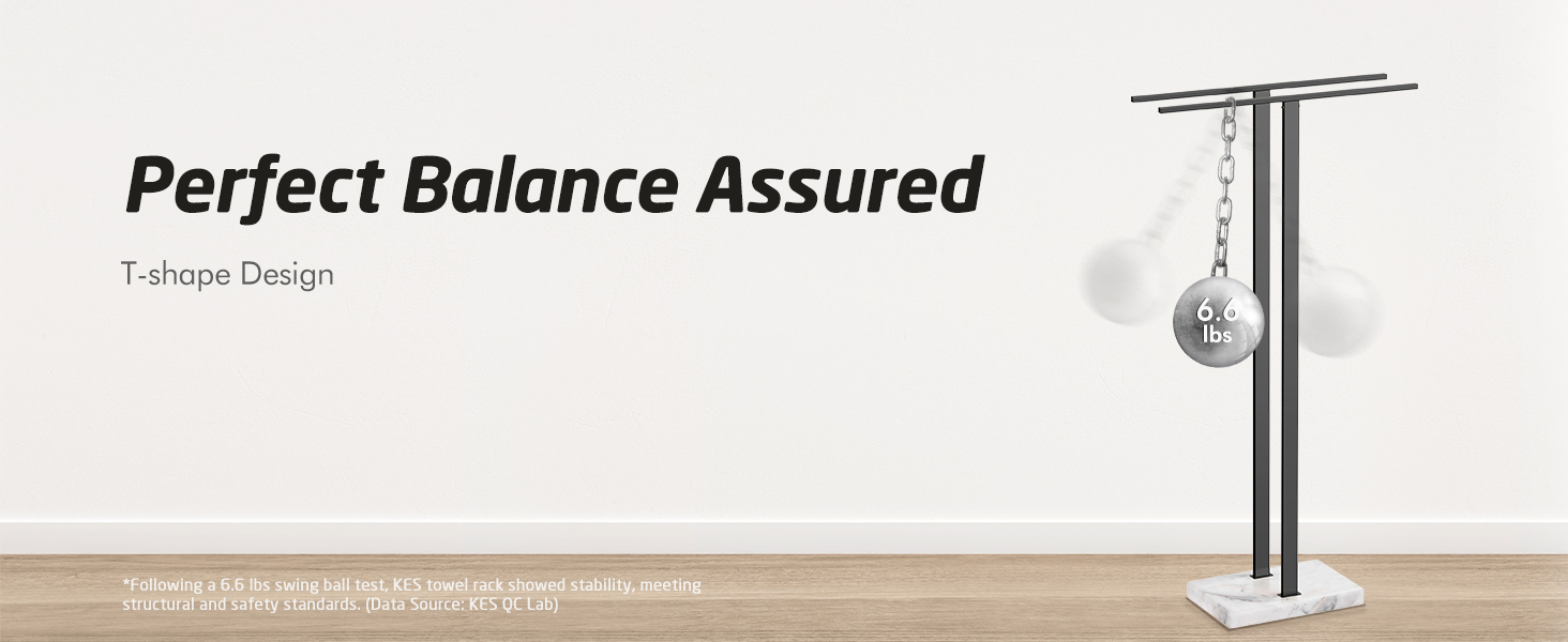 [Tall Enough for Large Bath Towels] KES towel stand is 37″ (94cm) tall in total, allowing large bath towels up to 70″ in length to be hung without touching the floor and keep hygienic. NOTE: Both upright rods are the same height.